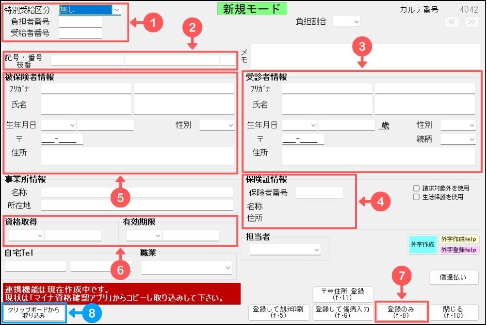 マイナ資格確認アプリのコピーボタンでコピーを取り、【クリップボードから取り込み】を押すと、自動的に資格情報が入力されます。
