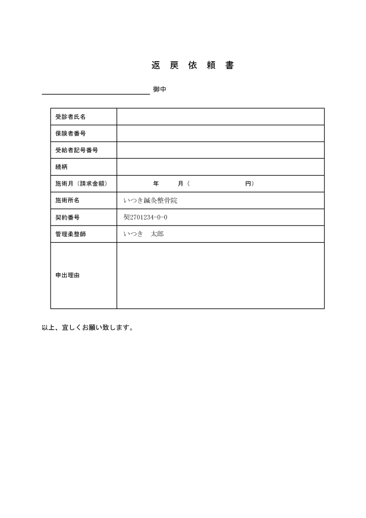 Utility→用紙色々→その他→返礼依頼書からも印刷できます。